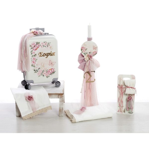 Βαπτιστικό σετ με ρομαντικά λουλούδια και όνομα