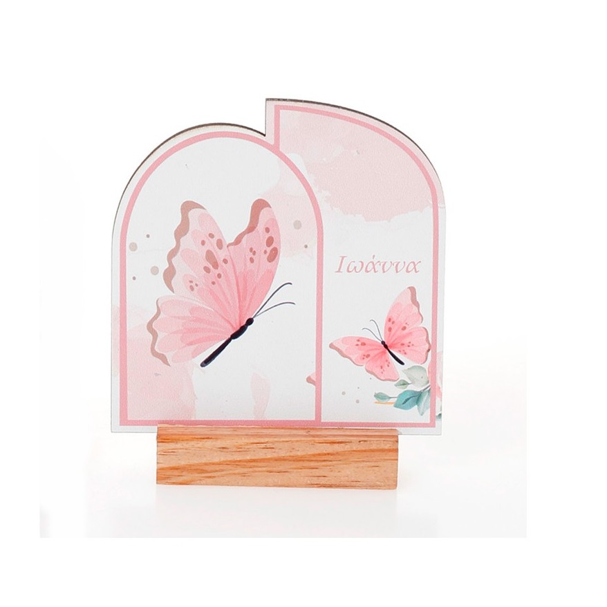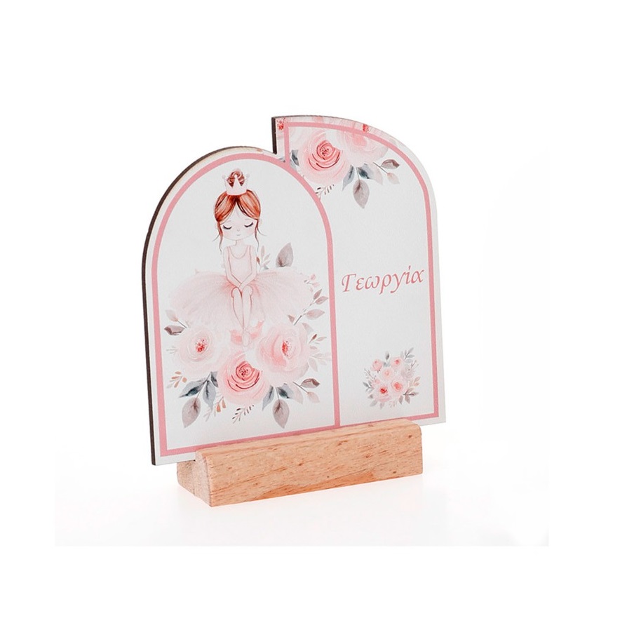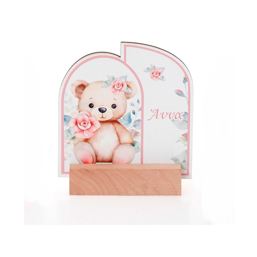 Ξύλινο διακοσμητικό με δυνατότητα προσωποποίησης ονόματος. Τοποθετημένο σε ξύλινη βάση, ιδανικό για τη διακόσμηση του παιδικού δωματίου.