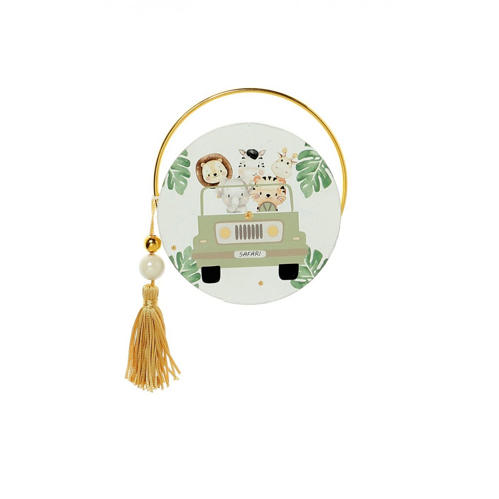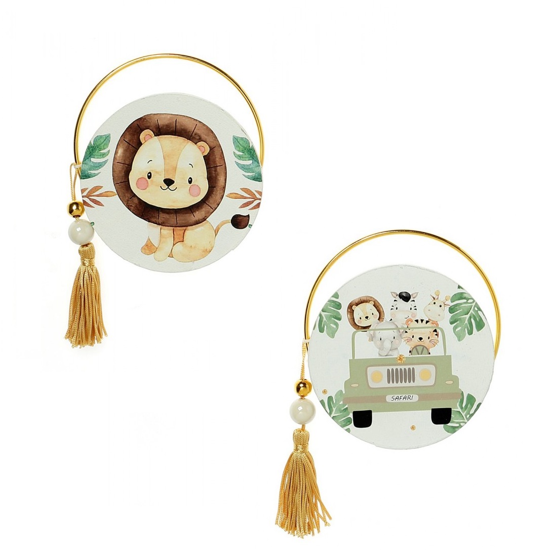 Μπομπονιέρα στρογγυλό εκτυπωμένο ξύλο και χρυσό στεφανάκι με Θέμα Ζωάκια